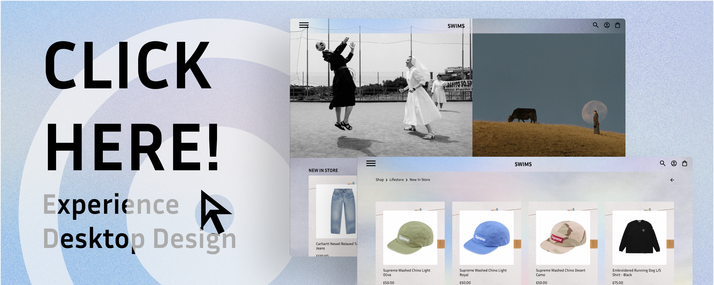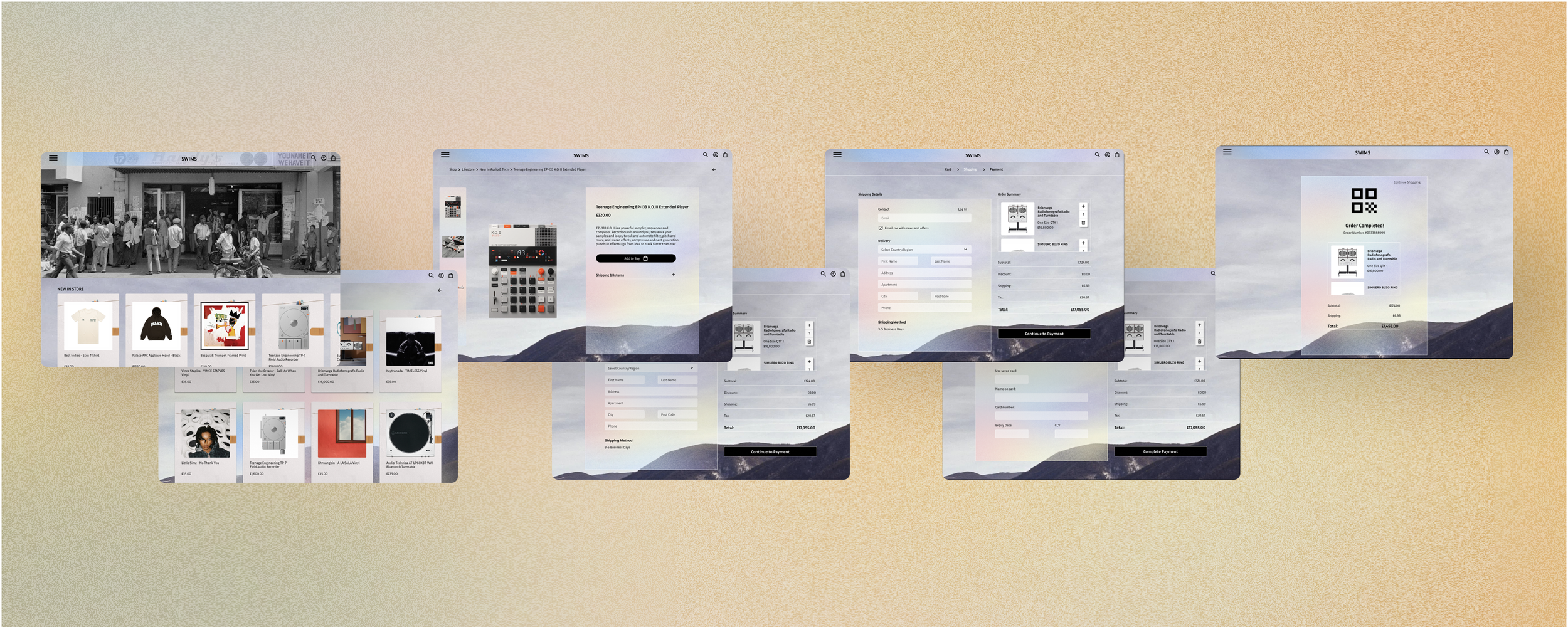 Context: Responsive, mobile-first, shopping design for a streetwear, homeware, audio tech & art marketplace.